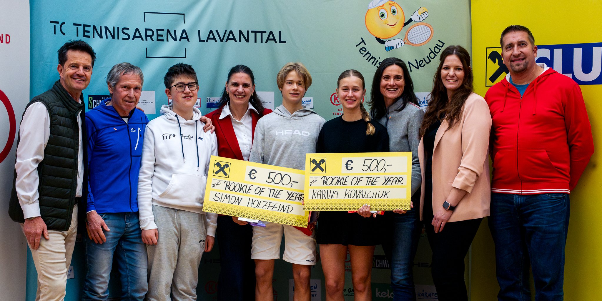 Im Zuge der Kärntner Hallenmeisterschaften 2026 wurden Karina Kovalchuk und Simon Holzfeind (beide KLC) als KTV Raiffeisen Rookies 2025 prämiert. Beide erhielten von Lynnette Kaus-Hübl (Obfrau des Raiffeisen Clubs) im Beisein von KTV Präsidentin Elke Romauch einen Scheck über EUR 500,00.