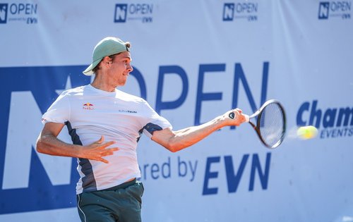 Pünktlich um 14:00 Uhr enterten dann die Nummer eins von Tulln, der in Niederösterreich ansässige Brite und Vorjahressieger Jan Choinski (ATP 150), und Österreichs vom Publikum besonders herzlich empfangener Shootingstar Joel Schwärzler (ATP 262) den voll besetzten Centre Court. Und die Begegnung des 29-jährigen Titelverteidigers mit seinem exakt zehn Jahre jüngeren Kontrahenten hielt, was sich die Fans von ihr versprochen hatten. Beide bauten am Tullner Sand zurecht auf ihre starken Aufschläge, aber obwohl Choinski mehr erste Kracher im Feld unterbringen konnte und Schwärzler vier Breakbälle abzuwehren hatte, konnte die ehemalige Nummer eins der Juniorenweltrangliste ihr Level Game für Game steigern und letztlich das Tiebreak auch dank extrem druckvoller Topspin-Grundschläge mit 7:3 für sich entscheiden.